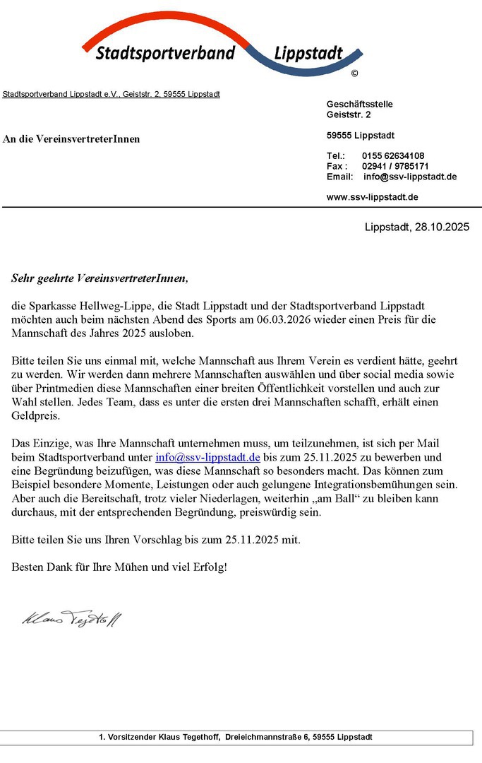 Die Lippstädter Hallenfußball-Stadtmeisterschaft wird 2026, nach einjähriger Zwangspause aufgrund fehlender Hallenkapazitäten, wieder stattfinden. Und zwar am